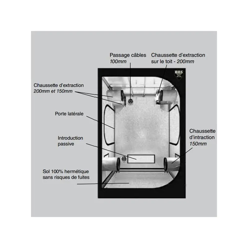 BlackBox Silver BBS V2 on kasvatusteltta, joka tarjoaa luotettavan, kestävän ja joustavan ratkaisunsisäkasvatukseen. Sen vahva rakenne, erinomainen valonhallinta ja ilmatiiviit ratkaisut tekevät siitä täydellisen valinnan vaativaan viljelyyn.